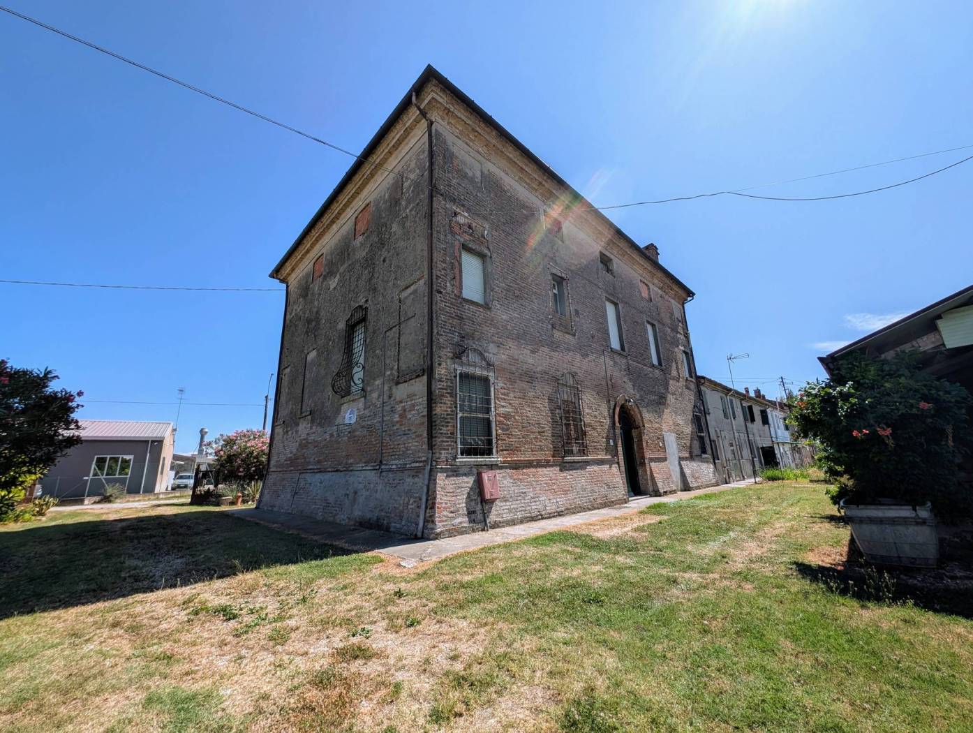 Masi San Giacomo - Proponiamo in vendita caratteristica villa padronale nel centro del paese, con giardino privato di 1100mq. E' disposta su due livelli più mansarda ed è caratterizzata da ampi e luminosi ambienti. Al piano terra stanza di ingresso, salone con caminetto, sala da pranzo anch'essa con camino, cucina abitabile, vano lavanderia. Il piano superiore, raggiungibile attraverso una comoda scala, è costituito da 5 camere da letto matrimoniali, doppi servizi di cui uno interno ad una camera. E' presente anche un piano mansarda, al grezzo, per ricavare eventuali ulteriori spazi abitativi. All'interno dello scoperto è presente anche un piccolo fienile/magazzino ed un garage doppio. L'immobile per le sue caratteristiche e la posizione comoda all'arteria Ferrara-Mare, ben si presta a diventare una struttura ricettiva piuttosto che una casa famiglia. Non presente l'impianto di riscaldamento. Certificazione energetica in fase di richiesta